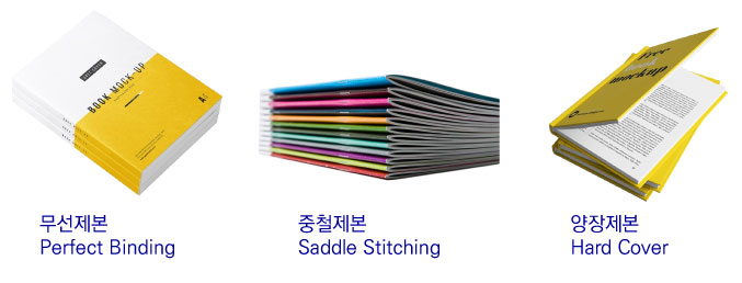 책의 오랜 역사만큼이나 책을 제본하는 방식은 수십 가지가 됩니다. 이중, 가장 많이 사용되는 3가지 방법을 소개합니다. ![]() 1.(무선제본)Perfect Binding : 현재 시중 책의 95%가 사용하는 제본 2.(중철제본)Saddle Stitching :책 보다는 카타로그 용으로 사용 3.(양장제본)Hard Cover : 양장제본으로 소장용으로 특별한 경우 사용 ![]() |