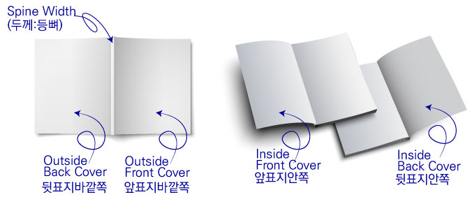표지는 내지보다 두꺼운 카드보드지를 사용하게 되는데, 책의 등뼈부분에서 종이가 깨지는 현상이 있으므로 코팅(라미네이팅)을 합니다. 1.(유광 라미네이션) Gloss Lamination : 유광 비닐코팅으로 통상정으로 많이 사용. 2.(무광 라미네이션) Matte Lamination : 무광 비닐코팅으로 번쩍이는 현상이 없음. 3.(고급자연무광) Matte Natural : 라미네이션(비닐코팅)이 없는 고급 자연무광지. |